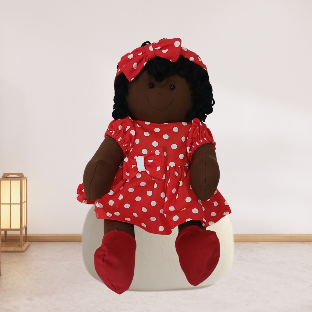 Encantadora boneca de pano feita à mão, com enchimento leve e macio de plumante siliconado, perfeita para abraçar, brincar e cuidar. Cada boneca é produzida com muito carinho e atenção aos detalhes, resultando em uma peça única, delicada e durável.